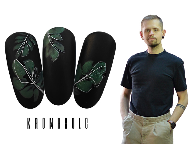 2. Pomocí štětce Platinum One Stroke nakreslete několik lístečků v odstínu BOOSTER COLOR - Hunter (170) a nevytvrzujte.