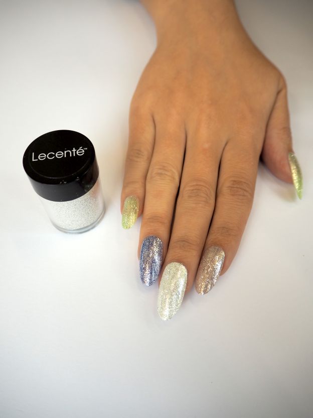 5. Přebytečné glitry oprašte z nehtu a jeho okolí pomocí aplikačního štětce.