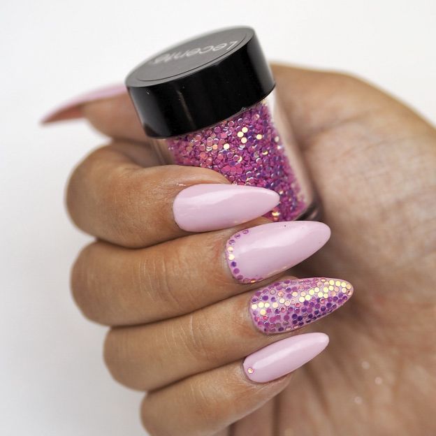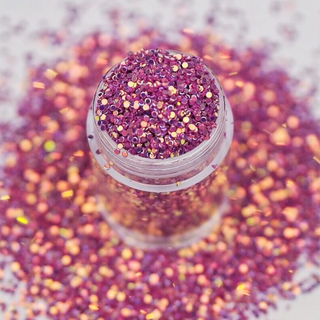 Krásné průsvitné glitry skládající se z 1 mm velkých zrcadlových ddisků v jasně růžové letní barvě. Perfektní pro pokročilý nailart.