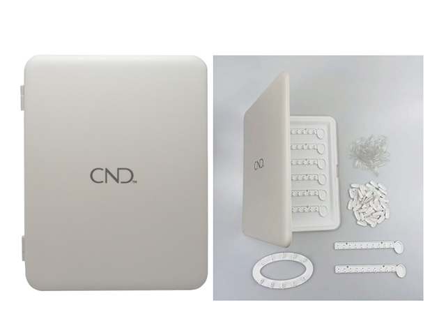Stylový doplněk do nehtového studia - elegantní vzorník s logem CND, který pojme 120 nehtových tipů. Ideální pro prezentaci sezónních kolekcí a jedinečných Nail Artů na jednom místě.