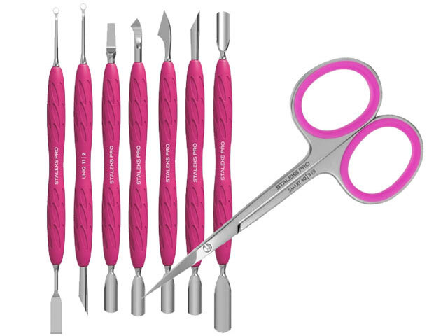 Profesionální nůžky na kutikulu SMART - rovné ostří, růžová barva SS-40/3