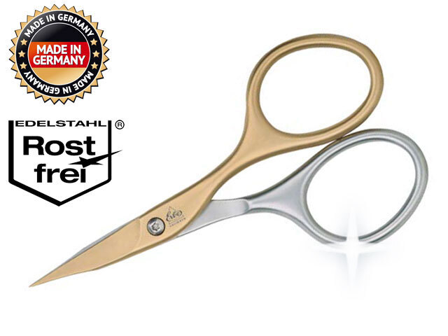Kombinované titanové nůžky s mírně zakřivenými stříhacími čepelemi pro přesné zkracování nehtů a precizní odstranění kutikuly.
