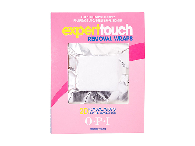Fólie OPI Expert Touch Removal Wraps s připojeným čtverečkem buničiny představuje ideální asistenta pro snadné odstraňování gelových laků a gelů.