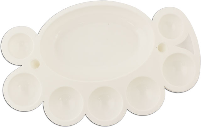 Bílá plastová paletka vhodná pro míchání gelových a akrylových barev pro Nail Art kreslení. Vhodná i pro míchání gelu s pigmenty. 7 měnších pozic a 1 větší pozice. Vyrobena z ABS plastu. Vhodné pro profesionální i domácí použití. Hmotnost 16g.