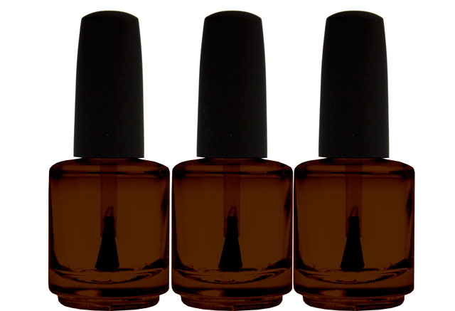 3ks sklěněné lahvičky, hnědé barvy, s pogumovaným víčkem a patentovaným štětečkem.