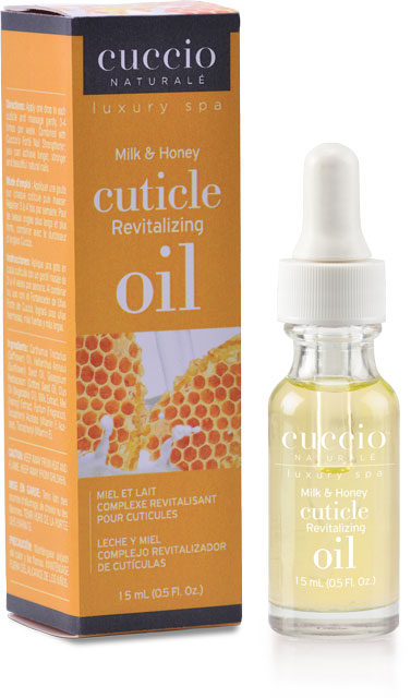Revitalizační olej na kutikuly Mléko a med je komplex slunečnicového, hroznového a sezamového oleje, poskytuje nehtům a nehtovému okolí dokonalou ochranu a revitalizaci. Extrakt z mléka   a medu vyživuje, hydratuje, zvláčňuje a ponechává nehtové okolí sametově hebké. Výtažky z medu jsou bohaté na minerály, které jsou velmi dobré především pro křehkou kutikulu.