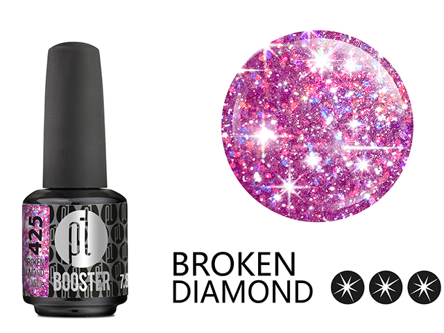 LED-tech BOOSTER COLOR NEW Broken Diamond aplikujte samostatně jako barevnou vrstvu, nebo je kombinujte s jinými odstíny pro dosažení třpytivého nailartu.