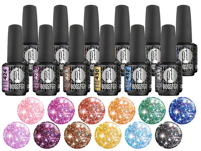 LED-tech BOOSTER COLOR NEW Broken Diamond aplikujte samostatně jako barevnou vrstvu, nebo je kombinujte s jinými odstíny pro dosažení třpytivého nailartu.
