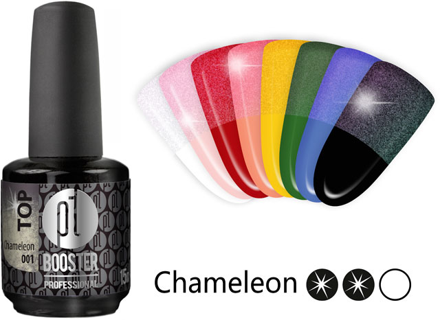 LED-tech BOOSTER COLOR DRY Top Chameleon 001, 15ml - Gel-lak s vysokým leskem BEZ PILOVÁNÍ <<< Zpět na přehled