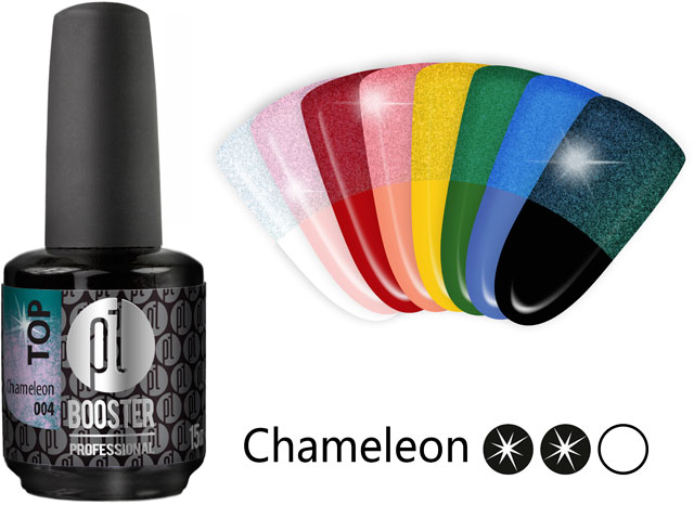 LED-tech BOOSTER COLOR DRY Top Chameleon 004, 15ml - Gel-lak s vysokým leskem BEZ PILOVÁNÍ <<< Zpět na přehled