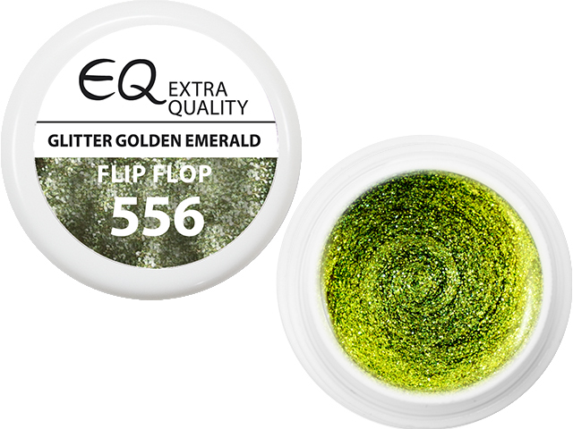 556 - Extra Quality Color Gel - Flip Flop GLITTER GOLDEN EMERALD, 5g (změna barvy podl úhlu pohledu) <<< Zpět na přehled
