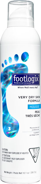 CZ – Pěna vhodná pro velmi suchou pokožku. Hydratuje a obnovuje velmi suchou kůži na nohou. Používá se při pedikúře jako poslední krok před masáží nohou přípravkem Footlogix Massage Fomula. Doporučuje se jako denní péče o nohy pro všechny typy pleti včetně diabetiků. přípravek určený hydrataci a zklidnění velmi suché pokožky. Bez okluze. Pěna se okamžitě vstřebává a nezanechává mastný film. Ponožky a boty mohou být nazuty ihned po aplikaci pěny. „Jednoduše naneste a můžete jít!“Bez parfemace, syntetických olejů a alkoholu.