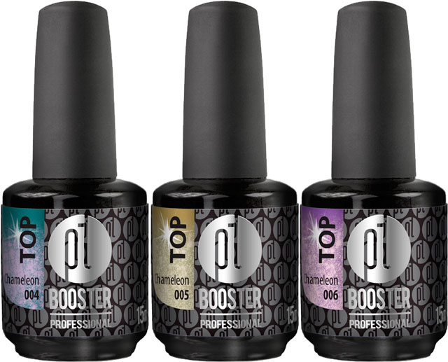 LED-tech BOOSTER COLOR DRY Top Chameleon 004, 15ml - Gel-lak s vysokým leskem BEZ PILOVÁNÍ