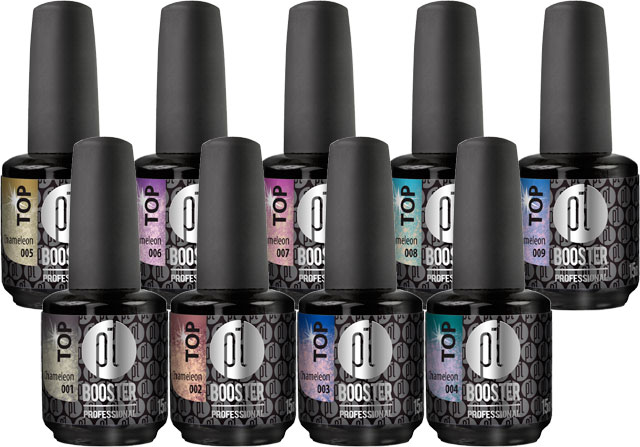 LED-tech BOOSTER COLOR DRY Top Chameleon 009, 15ml - Gel-lak s vysokým leskem BEZ PILOVÁNÍ