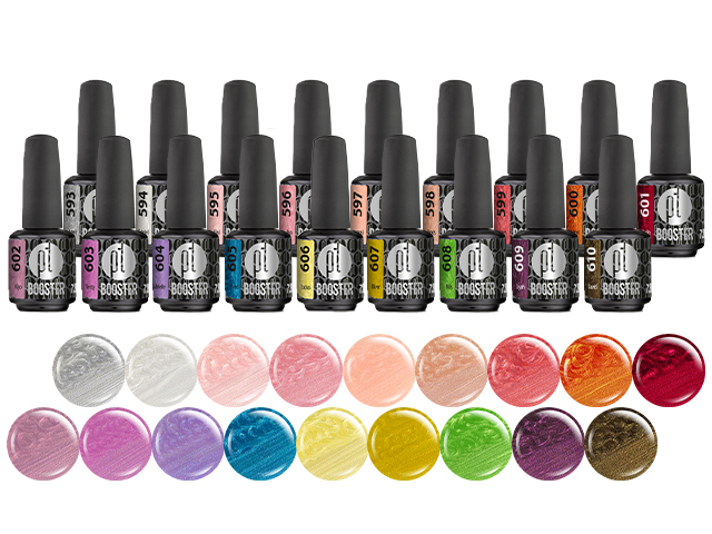 Naneste 2 tenké vrstvy BOOSTER COLOR barvy dle vašeho výběru. Každou vrstvu vytvrďte 30 sekund v LED lampě nebo 2 minuty v UV lampě. Lahvičku před použitím řádně protřepejte.