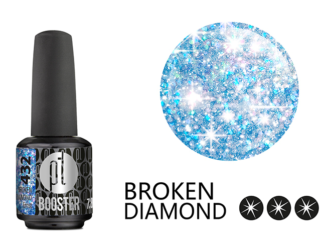 LED-tech BOOSTER COLOR NEW Broken Diamond aplikujte samostatně jako barevnou vrstvu, nebo je kombinujte s jinými odstíny pro dosažení třpytivého nailartu.