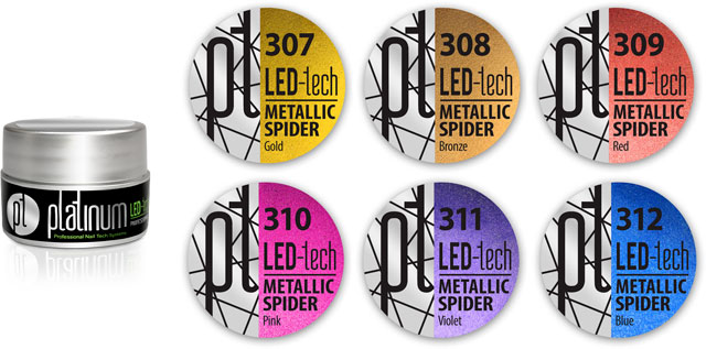 Platinum představuje novou generaci SPIDER gelů. Kaučukem obohacené gely se snadno táhnou, netrhají se, perfektně kryjí a umožňují tak precizní nail art s dokonale tenkými liniemi. Vhodné pro použití s transferovými fóliemi nebo k zaleštění pigmentů.