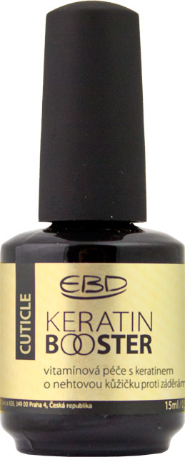 Cuticle Keratin Booster je olejová péče o nehtovou kůžičku s obsahem mandlového a jojobového oleje a keratinem. Pečuje o poškozenou, suchou nehtovou kůžičku se sklonem k záděrám. Aktivní látky obsažené v olejové péči nehtovou kůžičku regenerují, hydratují, vyživují, zvláčňují a napomáhají k prevenci před vytvořením záděr. Přípravek se 1 - 2x za den jemně vmasírovává do nehtové kůžičky. Má jemnou mandlovou vůni a dobře se vstřebává do pokožky.