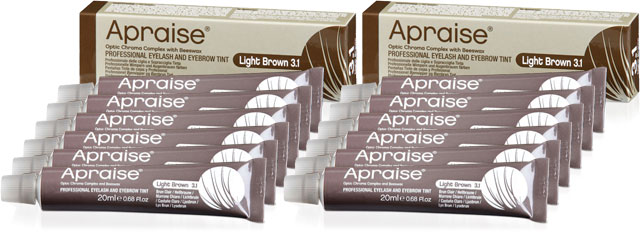 PROFI PACK obsahuje: 12ks Profesionálních barev na řasy a obočí APRAISE® - SVĚTLE HNĚDÁ 3.1, 20 ml