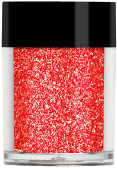 Oranžově červené průsvitné glitry se zlatými podtóny. Třpyt se mění podle typu podkladu a bude slušet všem odstínům pleti.