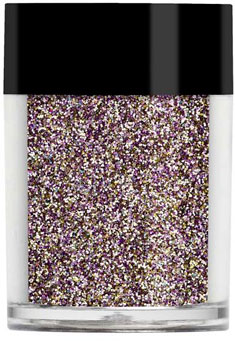 Tříbarevné multi glitry s většími kousky s odlesky světle zelené, lila a tmavě fialové barvy.
