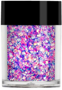 Krásné průsvitné glitry skládající se z několika velikostí mnohostranných různobarevných šestiúhelníků v jasně růžové, fialové a modré barvě. Perfektní pro pokročilý nailart.
