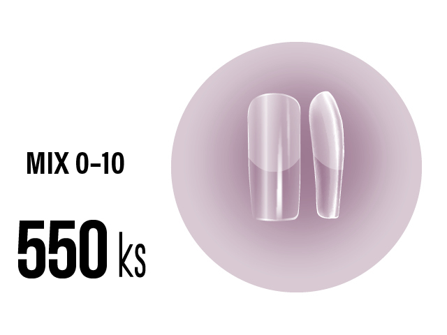 SOFT GEL Tips - MEDIUM SQUARE half matt - střední rovné polomatné, mix 0-10, 550ks <<< Zpět na přehled