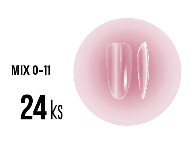 SOFT GEL Tips - MEDIUM ALMOND full clear - střední mandle čiré, mix 0-11, 24ks (A-37) <<< Zpět na přehled