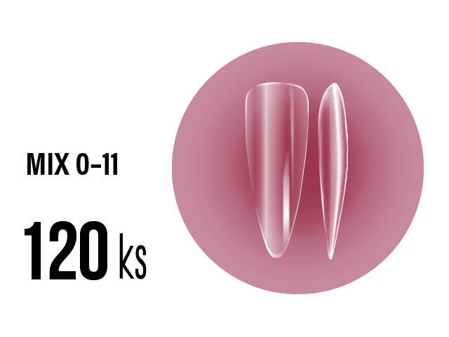 SOFT GEL Tips - MEDIUM STILETTO full clear - střední stiletto čiré, mix 0-11, 120ks (A-08) <<< Zpět na přehled