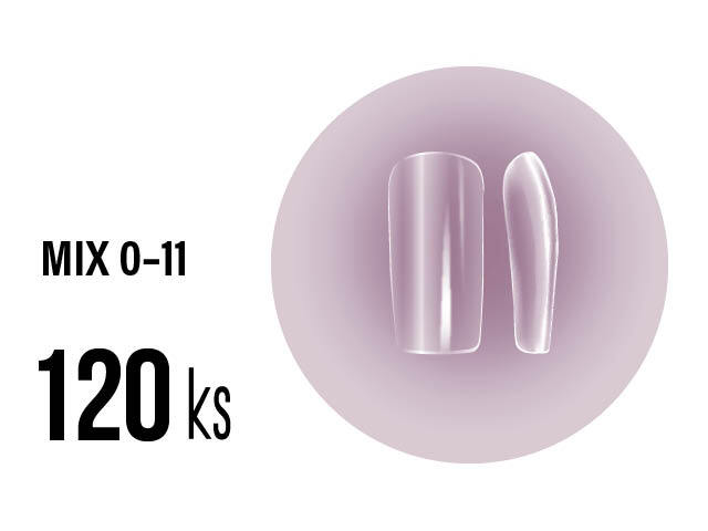 SOFT GEL Tips - MEDIUM SQUARE full clear - střední square čiré, mix 0-11, 120ks (A-34) <<< Zpět na přehled